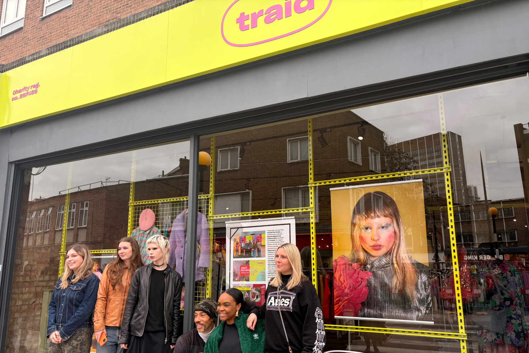 Working alongside Mark Lawerence, Visual Merchandiser at Traid, the group have their work displayed at Traid’s Lewisham store, running until 26 February 2026. Selected images from their final shoot, alongside key garments and styled looks, have been brought to life in a professional storefront setting, with additional coverage featured on the Traid website.