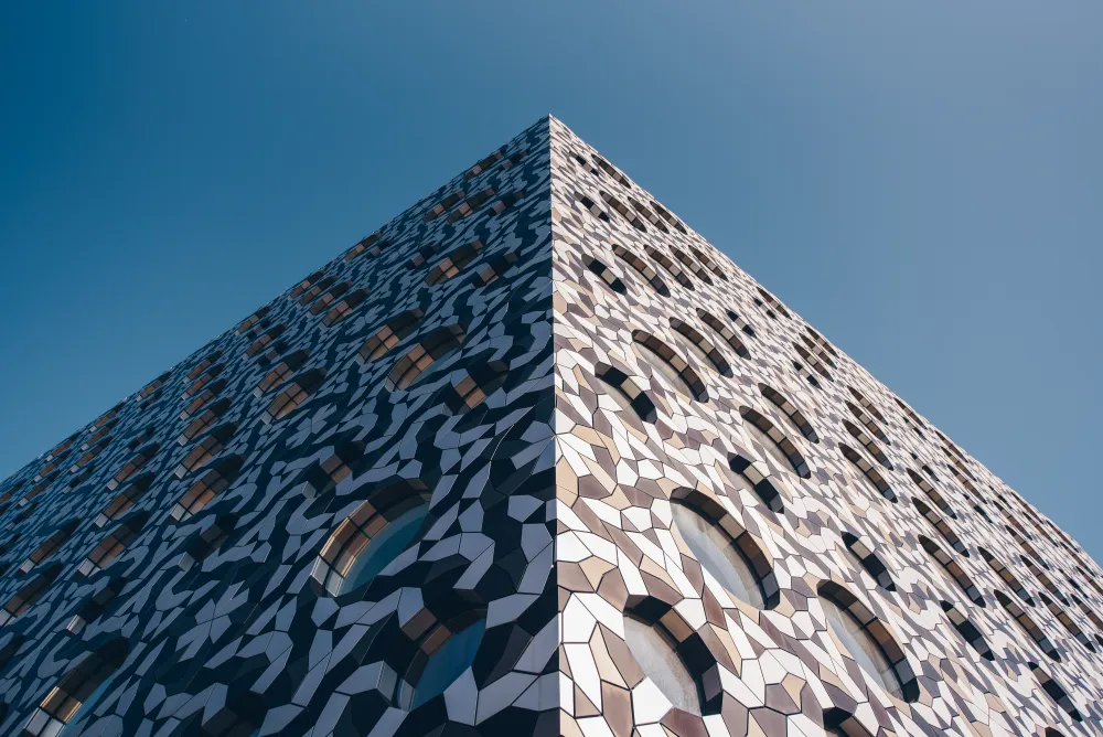 Swathed in a mosaic of 28,000 gleaming tiles, our building plays a standout role on the Greenwich Peninsula.